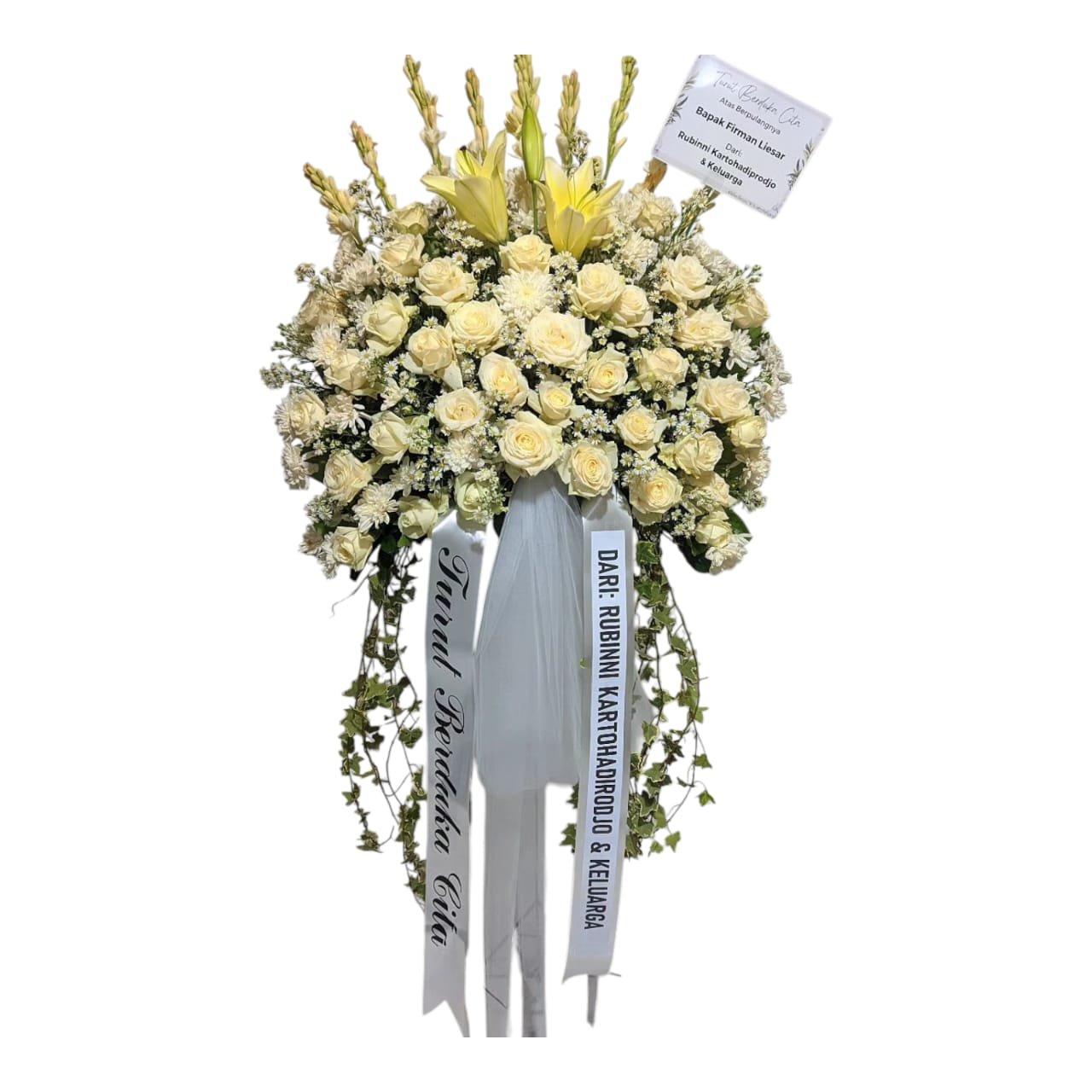 Oleh karena itu, Rangkaian standing flower bisa menjadi media untuk menyampaikan pesan belasungkawa tanpa kata-kata.